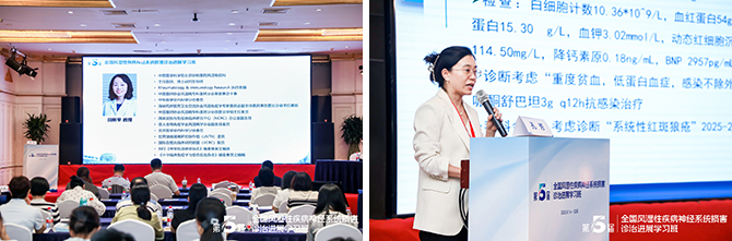 由张江林教授(解放军总医院第一医学中心)主持,首都医科大学宣武医院李雪梅教授呈现复杂、罕见系统性红斑狼疮合并TTP病例,从病史采集到诊疗决策全过程,引导参会人员参与讨论,学习疑难病症诊疗技巧,碰撞出思维火花 。